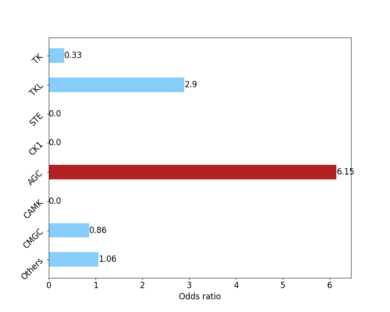 2.Odds diagram: Indicating that the compound may be a selective compound of a kinase group, the greater the odds value, the greater the selectivity of the kinase group, and vice versa.