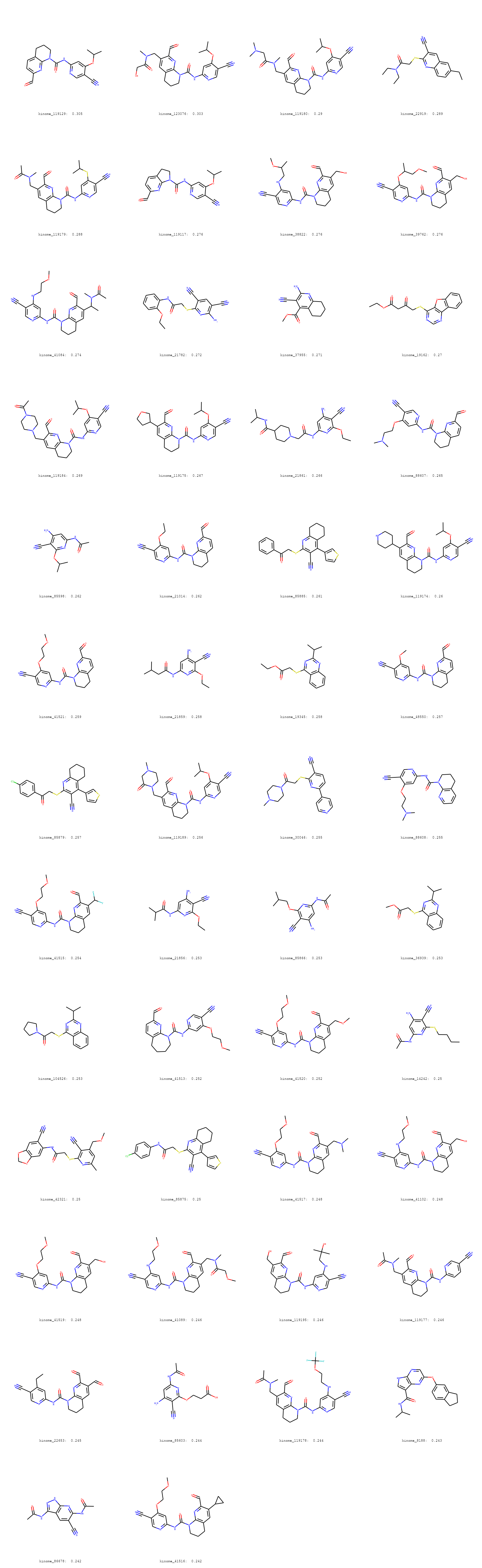 Show the reference structures of the top 50 known kinase-active compounds with the highest similarity to the submitted molecules.