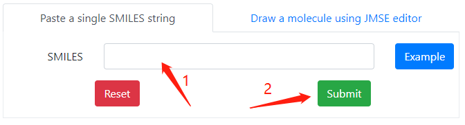 You can paste a single SMILES string to the textbox, then click on the submit button to submit the calculation.