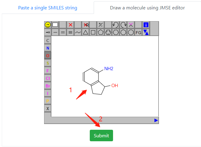You can Draw a molecule using JMSE editor,then click on the submit button to submit the calculation.