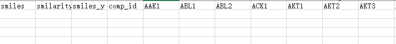 The second named ref_mols_result.csv file records information on the activity of known kinase active compounds with similarity to submitted predicted compounds greater than 0.5;This file may be empty when not matching to a compound with a similarity greater than 0.5.